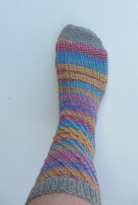 Ein ausführliches und übersichtliches Sockenmuster, optimiert für Mini Rundnadeln wie die Sockenwunder von Addi. Für 4-fädige Sockenwolle Sockentabelle im Anhang von Gr. 22-49 Afterthought-Heel / Nachtragsferse genau erklärt. Ungewöhnliche Abnahme für Ferse und Spitze. Kitchener Stitch erklärt. Einfarbig, mehrfarbig, oder mit Verlaufsgarn, Waldemar wirkt! Für Männer, Frauen & Kinder geeignet.