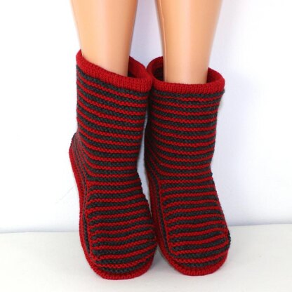 This is the madmonkeyknits FREE Cloudborn Fibers Adult Stripe Boots knitting pattern.