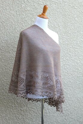 Freesia is a half circle shawl knitted top down. The body is knitted in one piece with 5 main lines for stitch increasing.