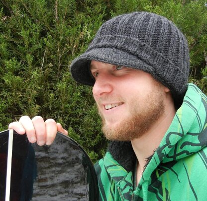Questions about the pattern? Send me a message here on Ravelry or email me at woolybearhandknits@yahoo.com. Ribbed hat with brim, x-shaped top, and rolled up cuff. Brim shape is created through geometry, tight gauge and double layers - no cardboard or plastic! Brim photo tutorial available - email me at woolybearhandknits@yahoo.com.