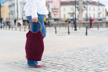 When half of the bag is made, work is turned upside down, yarn is joined to the starting chain again, and work continues until the other half is finished - this way the texture looks the same at both sides of the purse.