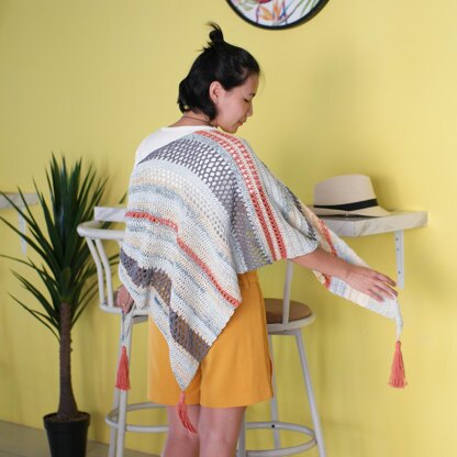 I’ve always wanted to design a wrap that can be worn as a light layering for day to day activities, both in warmer weather (as I live in tropical country!) and in colder areas. During my trip to Perth, Australia, the picturesque views of the landscapes got me inspired, especially the day trip we did to Fremantle! The clear blue sky, the turquoise sea, the sandy beaches. I’d like to etch those colors in my mind forever!