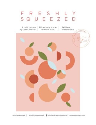 Freshly Squeezed is an intermediate quilt pattern with templates to help conquer curves! Feast your eyes on some quilty goodness and cherry pick from baby, throw and twin sizes, with a pillow mixed in for good measure. Master three styles of curved block and combine to make your own fruit salad with a little flair. Easy peasy, lemon squeezy!\n\n\n\nSkill level: Intermediate\n\nDownloadable PDF\n\nContains templates for drunkard’s path, orange peel and double drunkard’s path blocks\n\nIncludes instructions for Baby (35 x 43in), Throw (56in x 68in) and Twin (70in x 85in) size quilts, and 18in pillow\n\nColouring section included to help plan fabrics\n\nFabric swatch keys on cutting pages to help keep track\n\nStep-by-step graphics and layout diagram included to accompany detailed instructions\n\nLinks to a video to assist with sewing curves\n\nAll C&C patterns assume yardage to be 42in wide and seam allowances to be 1/4in\n\nNot designed for directional background fabrics.\n\nBrowse #freshlysqueezedquilt on Instagram