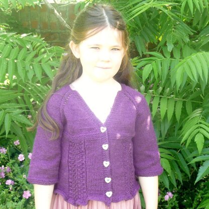 This design is perfect for little girls of all ages. The pattern is seamless and is knit as one piece from the top down. There are lacy eyelets on the raglans, lace panels back and front, a fluted frilly bottom and three quarter length sleeves. A pattern that is easy to follow and with lot of detail for added interest.