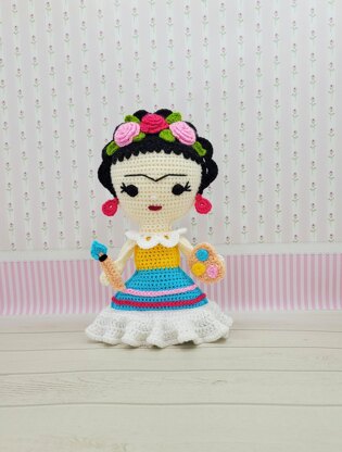 (PDF file) Crochet amigurumi rag doll pattern a doll Frida. This pattern is available in ENGLISH.