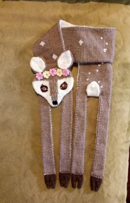 Constructed in double knitting, this two layer scarf was inspired by my love of vintage, Bambi and Frida Kahlo.
