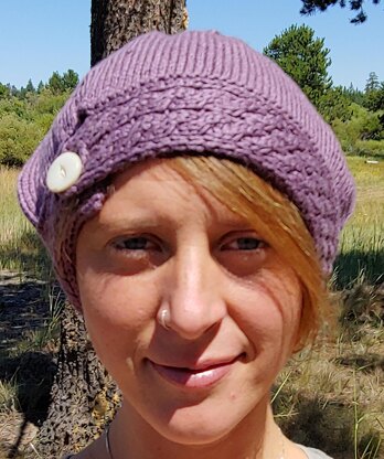 This hat pattern is designed to make a hat that fits well. The pattern starts with a cable band made the circumference of your head, with a buttonhole. Stitches are then picked up for the crown and knit in stockinette.