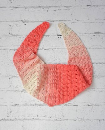 Materials Lion Brand Scarfie yarn (78% acrylic/22% wool, 5.3 oz/150 g, 312 yd/285 m) – 1 skein in 227 Coral/Cream, or approximately 255 yd (233 m) in any bulky weight yarn.