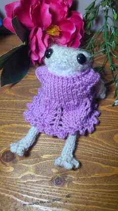 A short sleeved dress with a chevron lace skirt for your froggy (Frog pattern by dotpebbles - link in pattern of you don't have already)