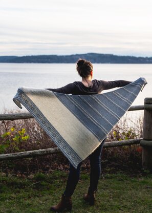 This shawl pattern has relaxing sections of stockinette as well as more complex techniques mixed throughout to hold your interest. These techniques include: i-cord edge, backwards loop increases, knit 1 below, double seed stitch, and mosaic knitting.