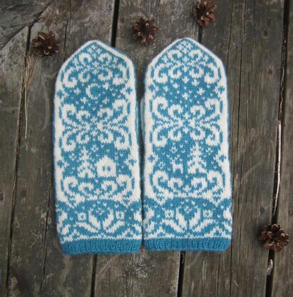 Notes1. Size: The mittens are 68 stitches in the hand part. With recommended yarn, needles, and gauge the mittens should fit an 8” circumference hand. To make larger size mittens use larger needles. 2. Stranded colorwork: Follow the charts from right to left. Make sure to catch longer floats using preferred method. 3. You’re expected to be familiar with the afterthought thumb construction.