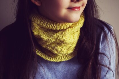 This cowl is knit in the round.