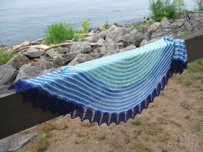 **Yarn:**Version 1 (Version 2): MC: 460yds /420m (300yds /270m) of fingering weight yarn; gradient, hand painted or solid color. CC: 115yds / 105m (275yds / 250m) of of fingering weight yarn; solid color. The shawl can be made with other weight yarns with appropriate needle sizes