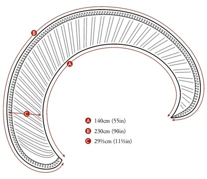 | One size only: | 140cm/55inches inside edge- 230cm /90 inches outside edge- 30cm/11.5 inches deep |