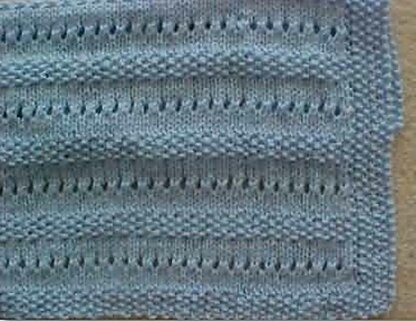 FUN! That is what people tell us that have purchased this pattern and knitted it! The best part is, the design is great for boys or girls. You will use this pattern over and over again for all the new babies! Uses worsted weight yarns, knitting needles size 10.5. You may want to use a circular needle to accommodate the stitches. The pattern is a simple repeat , and once you have done a few inches, you will remember it. Finished blanket size is about 37½ inches wide, and 40 inches long. This is a good size that will grow with baby!