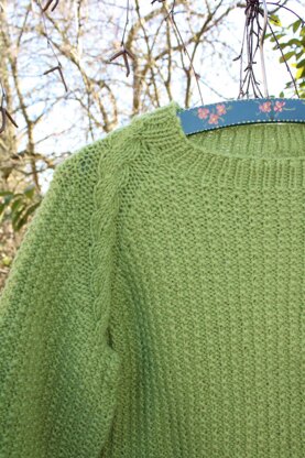 Funke is a childs sweater. Funke is a sweater/pullover knitted from the bottom edge and up with a textured all over pattern. The sweater has a raglan yoke and long sleeves and rib edges. The pattern is made for at yarn with a gauge of 20 stitches per 10 centimeters (textured pattern) i.e. a yardage of approimately 90 meters per 50 grams.