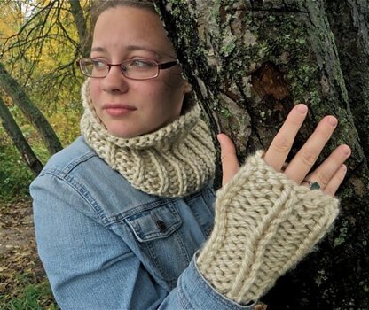 The mitts require approx. 60 yards of yarn. The cowl requires 95 yards of yarn.