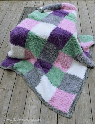 The first project in my furry series is here, and I named it a Furry Squares Blanket. My idea was to find a fast and easy way of working with furry yarn in crochet. No wonder that fur is not the easiest material to crochet with as it is hard (or impossible) to see the stitches because of the massive fluff. And an adventure which should give relaxation and joy turns into headache and unravelling.