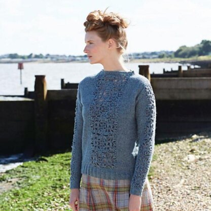 GAEL is one of my favourites from the WINTER CROCHET collection and is a crochet and handknit design made up of crochet motifs worked together to form double width panels for the front and back and single width panels for the sleeves. The rest of body and sleeves are completed by knitting off the crochet panels after picking up stitches along the side edges. The welt, cuffs and neck trim are then added.