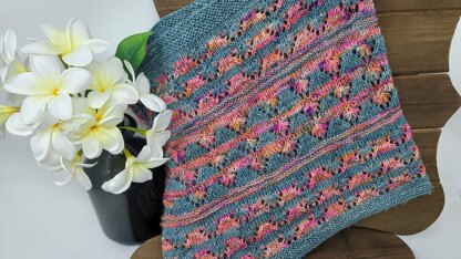 GARDEN PATH COWL is a fun, lacy cowl that is created one color at a time using elongated stitches.Whether you are looking to show off a fun variegated yarn, or some delightful tonals, this cowl brings springtime to life! Gauge is variable, as is your yarn choice. The samples shown are worked in a variegated fingering weight, and a high-contrast solid sport weight yarn.