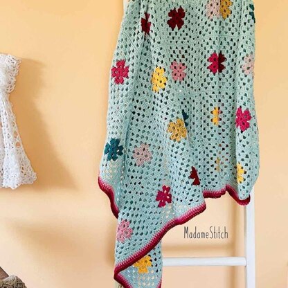 Construction * 63 6-round granny squares * Squares slip stitched together * Single crochet border