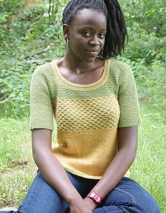 Yarn Requirements: Soft Linen by Classic Elite 35% linen, 35% wool, 30% baby alpaca 50 gram ball = approx 137 yards • 4 (4, 4, 5, 5, 6) balls 2250 Inca Gold or approx 450 (510, 540, 570, 605, 650) yards in comparable yarn • 3 (3, 3, 4, 5, 5) balls 2281 New Fern or approx 300 (350, 415, 490, 575, 640) yards in comparable yarn