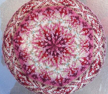 A dusty summer day in Montana spent searching for garnets trapped in granite inspired the colors in this classic Fair Isle tam. Eight colors of Jamieson's Shetland Spindrift yarn are used in this design.