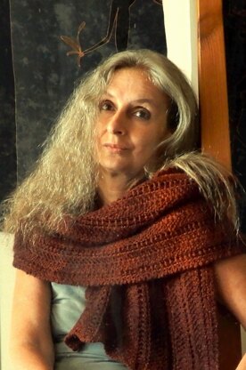 The Garter Hug is an easy and relaxing stole to knit. It is worked from side to side in a chevron pattern. There are no purls involved. The rounded shape is achieved by using short rows.