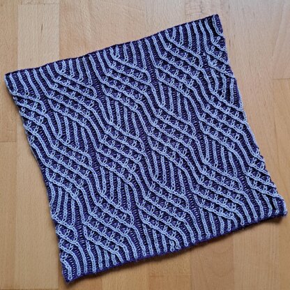 To knit this cowl you should have a basic knowledge of knitting two-colour brioche.