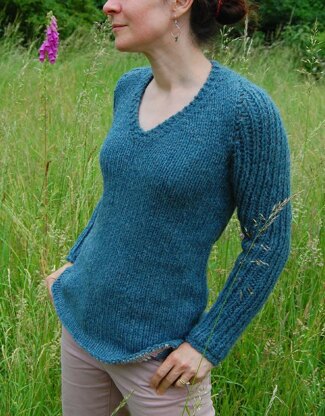 This sweater can be knit in any weight and type of yarn and any needle size without a gauge calculation being required. I've listed a few yarns - but really you can use anything that pleases you. Testers used cotton, wool, acrylic and even cashmere yarns in yarn weights from super-bulky to sock. Yardages will of course vary dependent on the yarn selected - links to helpful estimating tools are included in the pattern.