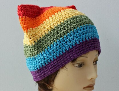 Wear your pride and solidarity with a rainbow pussy hat.