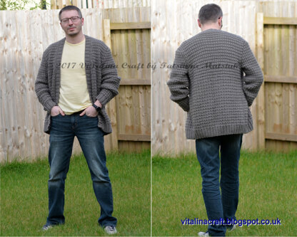 Gear Cardigan is a quick and easy project for those who love knitting with large needles. It is knitted bottom up with the bulky weight yarn. Back, front and sleeves are knitted separately. After all parts are sewn together stitches picked up along the front for neck finishing.