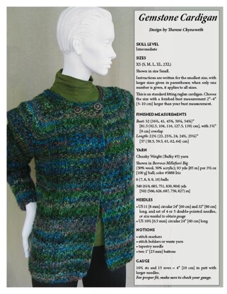 Inspired by a 1930s knit coat design, this updated version will look great in almost any chunky yarn from rustic to glam. Worked in one piece from the bottom up, the stitch at each front edge is slipped for a neat edge. Wide bands of moss stitch edge the fronts. After dividing the front and back for the armholes, set the body aside and work the sleeves in the round to the armholes. The body and sleeves are joined to work the yoke in one piece with raglan shaping. Use two large buttons to close the front. While not quite instant gratification, this cardigan will work up so quickly it will feel like the next best thing.