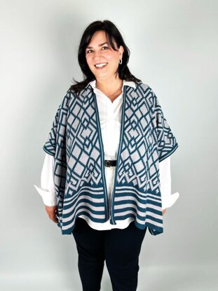 This crochet cape is perfect for adding a stylish touch to your outfit. The modern geometrical pattern is eye-catching and elegant, making it a versatile accessory for any occasion. The two-tone design adds depth and interest to the piece, creating a unique and fashionable look. The pattern is easy to follow; each number represents stitches, and letters denote colours. “L” for light and “D” for dark shades using the Fair Isle technique. Whether you're a beginner or an experienced crocheter, this cape is a fun and rewarding project. Elevate the GeoChic crochet cape pattern with your personal style! Choose from 4 dark and 4 light contrasting shades of yarn. Embrace your unique style with the versatile GeoChic crochet cape. Customize it to suit your preferences. Experiment with different closures to create a look that is truly your own. Layer this cape over your favourite outfit for a chic and cosy look. Add a touch of GeoChic style to your wardrobe with this crochet cape.