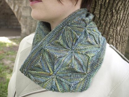 Inspired by my favorite ride at my favorite theme park, this cowl should remind you of a certain giant geodesic sphere in central Florida. This pattern is made up of modularly knit isosceles triangles. Keep yourself warm with the power of geometry!