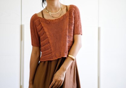 Geometry II is a short sleeve version of my design Geometry. It can be knit up quickly and is a versatile layering piece. Its modular construction is very flexible, making it easy to fit any body shape. Tips are given on how to adjust the neckline width, body length, body circumference and sleeve circumference.