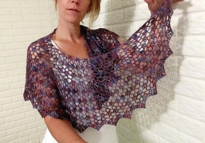 Georgette is a playful shoulder furl that will delight even the most stolid pragmatist. Georgette showcases a single skein of your favorite lightweight yarn in a spunky and simple lace that flourishes into a border of flirtatious frills. Wear Georgette tied as a charming shawlette at your décolleté or tossed over your silky shoulders to enchant!