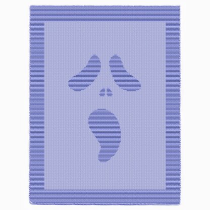 Knit something spooky with this Ghostface Halloween blanket knitting PDF pattern! Both the border and motif are worked in garter stitch, making it wonderfully beginner-friendly. The haunting mask stands out against a smooth stockinette background using only knit and purl stitches — no charts, cables, duplicate stitch, or colorwork required.