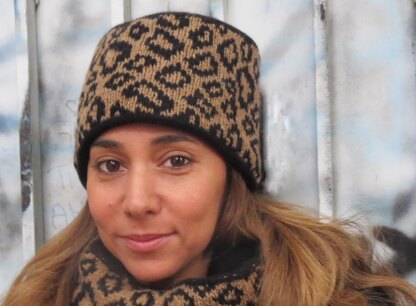 A faux fur hat with a fun, unusual “colpack” construction.