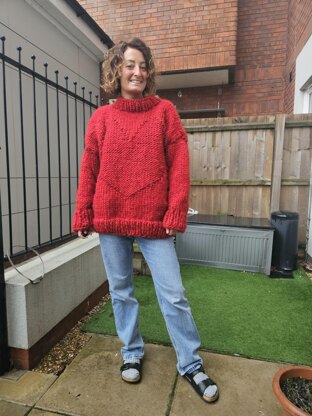 The giant love heart sweater pattern is the most oversized, cozy, giant piece to add to your wardrobe this winter season! It works up extremely quickly due to the super bulky / super chunky yarn to creates a loveable silhouette that you can wear year after year. The simple heart design offers a unique twist to a classic chunky knit sweater.