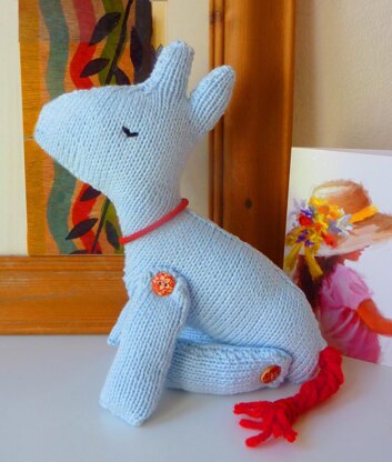 A complete illustrated knitting pattern to make a soft toy horse with a red plaited woolly tail and button joints, this makes a lovely gift for a horse lover. Using knit and purl stitches and increasing and decreasing, the fully illustrated instructions take you step by step through knitting, making up and decorating your pony. The finished horse can sit, stand, or even lie down, and looks lovely sitting on a bedroom shelf. Suitable for knitters with a little experience.