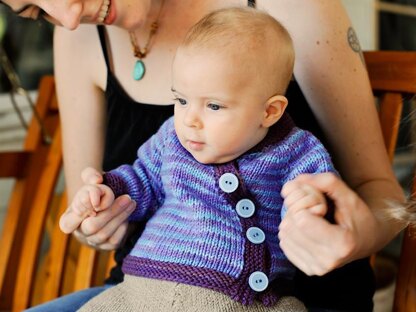 Everyone knows babies are a gift! Welcome them to the world with this classic wrap sweater knit in something soft for snuggling! Work it in a cotton blend with short sleeves for a summer baby or in soft wool with long sleeves for the colder months. When made from wool it can double as a cover over cloth diapers.