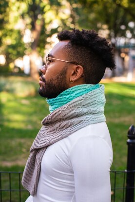 The best thing about tube scarves - no wrong side! Gigue Scarf is worked in the round with an all-over twisted traveling stitch pattern. Easily modifiable for length and width, Gigue can work with a wide variety of yarn options.
