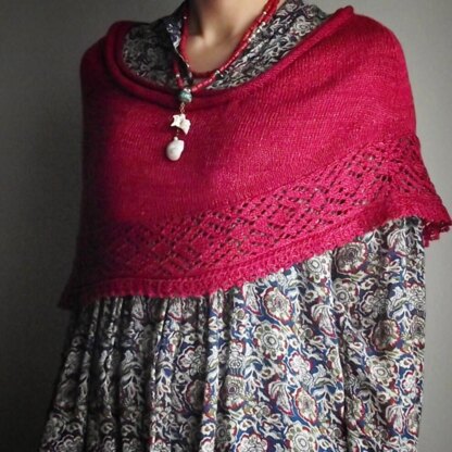 The lower border is worked first sideways, joining live stitches to the cast on stitches to form a ring. Then stitches are picked up from the straight edge of this border and the cape grow bottom-up, in stockinette stitch. To get its particular shape, it alternate the work in rounds, flat and the short rows technique. Completely seamless.*