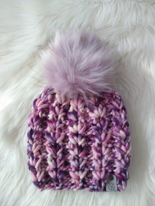 Pattern is written for adult size, with instructions for 5 different yarn weights: super bulky, bulky, light bulky, worsted, and DK. It features a unique stitch that is so pretty and stretchy. Brimless so you can get started with the pattern right away!