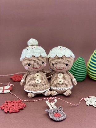 This is the pattern for Ginger Jim and Ginger Jane, my Christmas gingerbread couple. They are made with a 2.5 mm crochet hook, with 100% cotton yarns. They are 16 cm / 6 inches tall. Their measurements will change depending on the crochet hook and yarn you use.