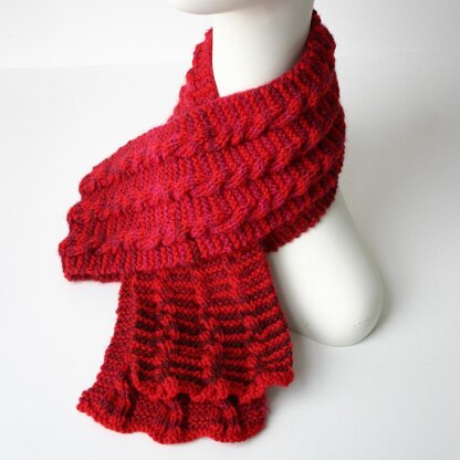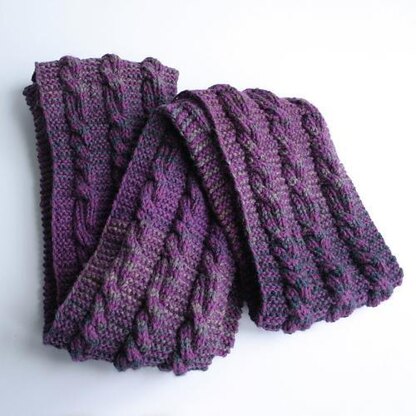 This pattern creates a thick reversible scarf with cable and large rib effect. It can be adapted to any length or weight, below are the measurements for the example shown.
