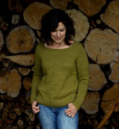 Striking chevron bands and a wide, shallow neckline add a feminine touch. The boxy body and slim arms are flattering and easy to wear, and the edges feature a tubular bind off for a really special finish.