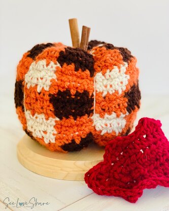 Crochet Pumpkins are just about the most fun item to make – especially as summer begins to wind down and cooler evenings start to creep in. There are a million pumpkin patterns out there and they’re all going to get you to lively fall decor. This one just adds a gingham plaid motif to it. There is nothing complicated about it and we’re going to walk you through everything you need to know to work it up on your own. From a step-by-step stitch guide to an assembly walkthrough. You’ve got this!
