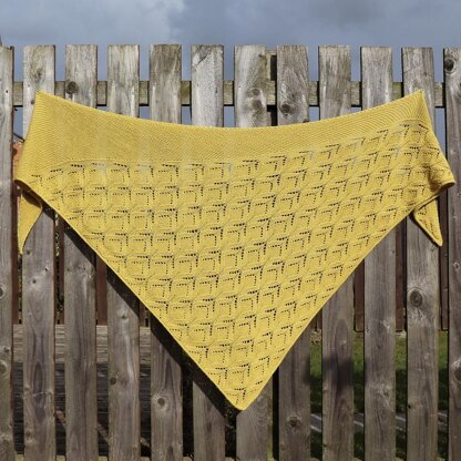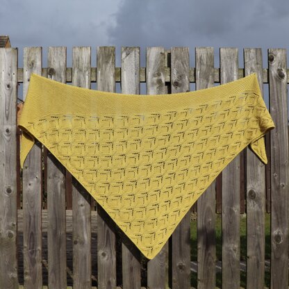Starting with a few stitches, the pattern evolves into a widening garter stitch border and a cascading lace motif which reminded me of the myriads of yellow flowers of the Ginster (Genista) bush which decorate the landscape in spring and summer. The pattern is easily size adjustable and suitable for different yarn weights which makes it a versatile pattern for all seasons.